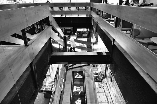 三联韬奋书店自开业以来,已经举办展览、签名售书、讲座沙龙等活动40余场。店长姜军说:“考虑到书店氛围,展台设计、听到的音乐、闻到的气味……这都很重要。”言几又值班经理刘海兵介绍,书店每个月都有主题陈列,正在进行的是“重温经典——老电影和文学、剧本”。