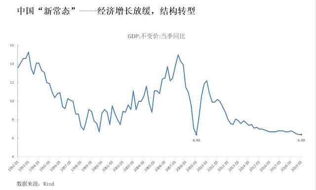 很多人都知道新常态,大家可能留意过相关的经济新闻。2019年初我们听到的是很多不好的消息,各种各样的股权质押出现问题,经济增长放缓;春节以后,我们听到的都是好消息,经济增长又开始恢复了,进出口的数据又开始好看了。这些消息很多,但是主线我觉得可以把握,总体的经济增长肯定是慢慢放缓的。