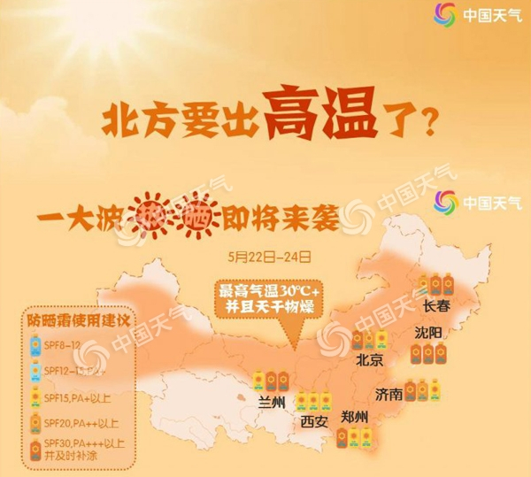 高温来了!未来三天,北京、天津、石家庄、济南、郑州、西安、沈阳气温都将飙至或超越35℃,热力十足;其中沈阳有可能出现史上最早高温。
