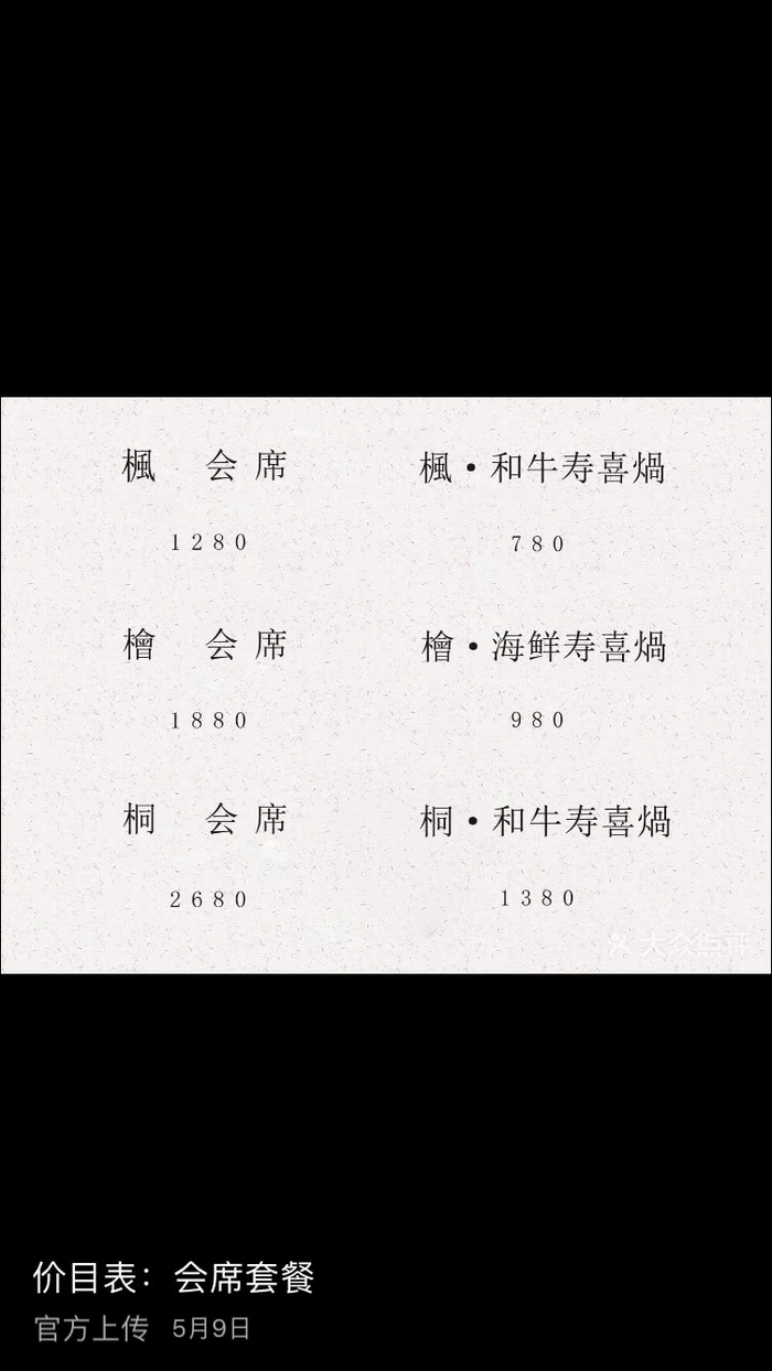 通过该店5月9日上传的会席套餐价目表发现,该餐厅的“桐会席”套餐价格是2680元。