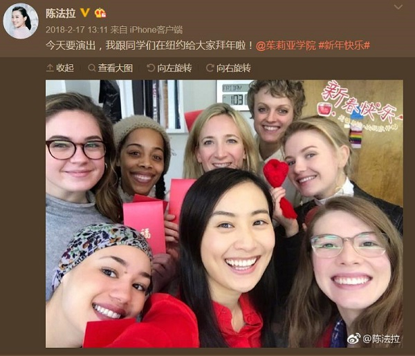 陈法拉的微博也记录了留学期间她上课、排戏、与同学相处的日常。