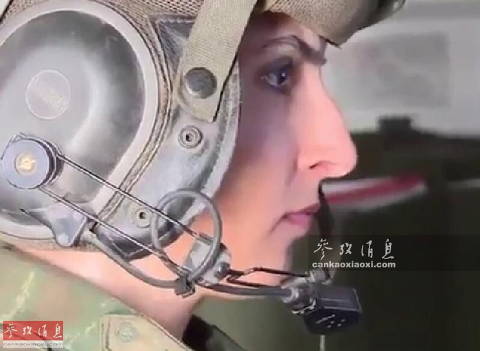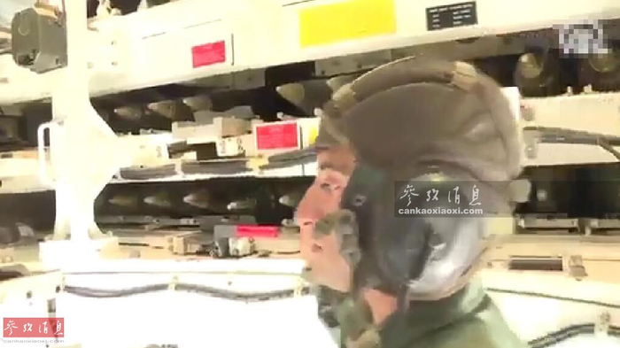 图为女军官进入T-155内,戴上头盔,准备操作设备。