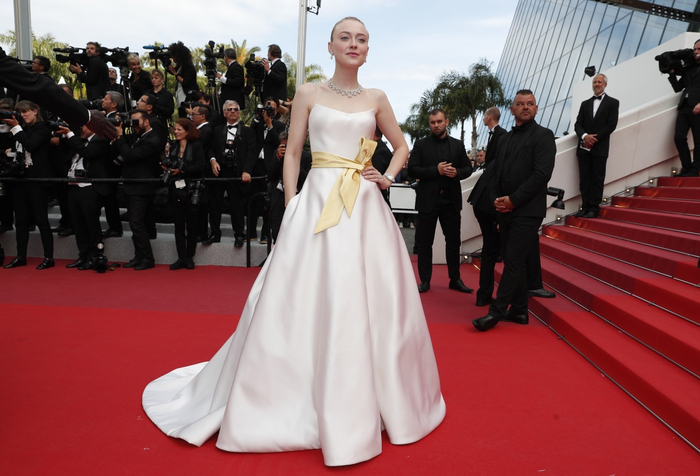 5月21日,在法国戛纳,影片《好莱坞往事》演员达科塔·范宁亮相首映红毯。 新华社 图