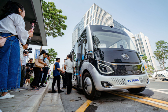 郑州郑东新区智慧岛,L4级宇通自动驾驶巴士试运行吸引了不少参与者排队体验。据悉,每辆巴士最多可提供12个座位,在开空调的状态下,充满电后可以行驶200公里。
