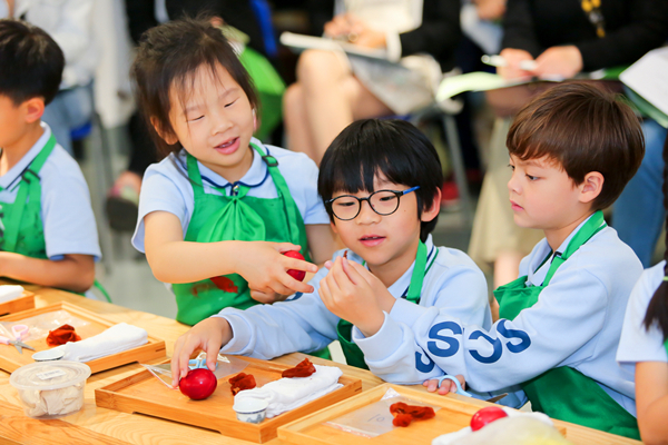 宋庆龄学校中国部小学主任汤慧慧说,作为一所国际学校,传统文化教育的国际性、开放性,一方面体现对外籍学生、教师的积极感染上,让来自30多个国家和地区的孩子、教师耳濡目染,爱上中国传统文化;同时也表现在教学上的开放视野,老师每年都会和不同国家的教育者交流,大家便将学来的教学法运用到传统文化教育之中。“我们相信中华传统文化中的‘定静安虑得’,能生长出孩子的自由、想象力和创造力,从而赋予传统文化教育的现代性。”