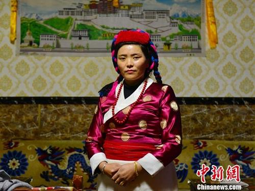 38岁的桑姆是门巴族人,她在喜马拉雅山脉东段的一条南伸大峡谷内经营着一家只有3间客房的家庭旅馆,每年4至10月是那里的“旅游季”,也是她最忙碌的时候。门巴族有1万余人,在中国属人口较少民族,主要分布于西藏山南、林芝等地,酒歌、舞蹈、服饰、手工艺等是他们独具的特色文化。图为5月20日,38岁的桑姆身着传统服饰在她开设的家庭旅馆内。中新社记者 江飞波 摄