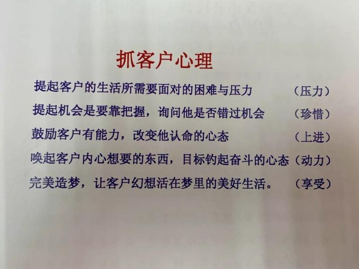 记住一定要抓住客户的心理,下面这张图就是我们抓客户心理的五大原则: