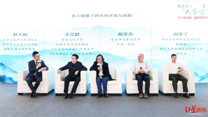 在活动现场,主办方还以主题沙龙的形式,就“天府文化古今谈”、“天府文化与世界文化名城建设”等话题,让王立群、戴思杰、舒大刚、刘亚丁发进行了探讨。