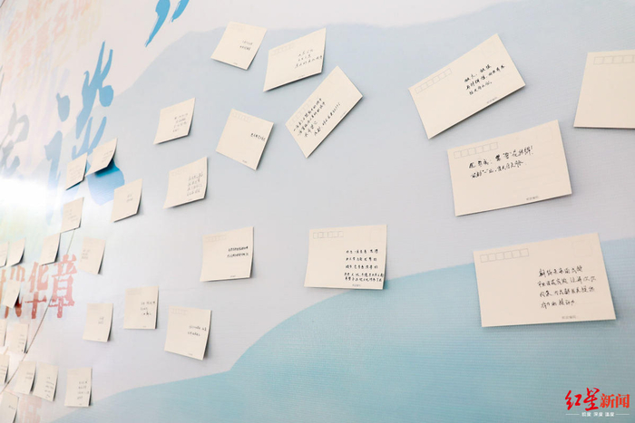 在活动的最后,现场所有参与者在四位“大家”的带领,共同在主题明信片上写下自己对天府文化发展、绿道建设的美好祝愿和真情寄语,并共同将其留在现场寄语墙上:“天府文化,光照千秋”、“我爱成都,中国文学的故乡”……