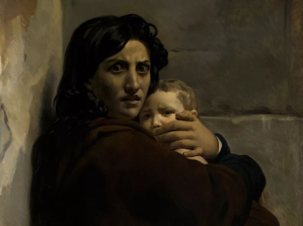 当欧仁·德拉克洛瓦创作这幅作品时,他已经是法国油画浪漫主义画派的领军人物了。作为生于启蒙时代的法国人,他不喜欢以强调精确细致作画为特征的学院派油画艺术,而倾向于使用更为奔放自由的笔触和明丽强烈的色彩。
