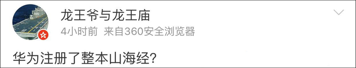 原标题:不止“鸿蒙” 华为把几乎把整本《山海经》都注册了