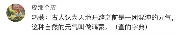 正如这位网友所说,鸿蒙一词取自古书,观察者网小编查询发现,西汉著作《淮南子》中也对“鸿蒙”有记录:至德之世,甘瞑于溷之域......提挈天地而委万物,以鸿濛为景柱。这里也认为鸿濛与宇宙的出现有着不可分割的关系。