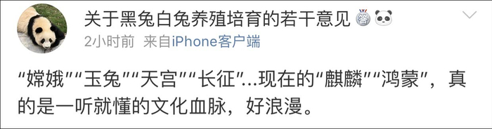 有网友表示,“chang'e”、“yutu”这些名字对于一些外国人来说可能一头雾水,但中国人看了却如吃饭般平常,心领神会,不觉有它;