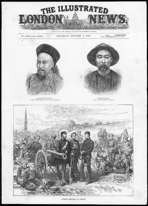 与之相类似的另一处错误出现在第35页,同样是两幅肖像,页下的文字说明是:“左宗棠与李鸿章,刊于(英国)《伦敦新闻画报》,1884年1月5日”。右侧的肖像是李鸿章无误,但左侧并不是左宗棠,也是曾纪泽。此处明言来自于英国的画报,通过检索可知,英报明确说这是曾侯爷(Marquis Tseng),故乃翻译错误。