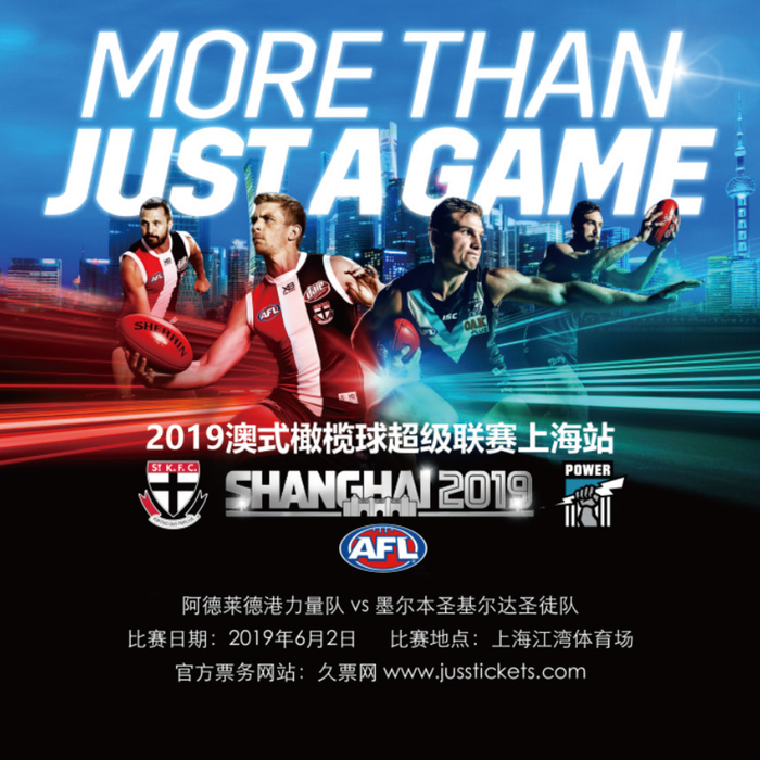 今年6月2日,作为AFL在北半球的唯一“海外分赛场”,上海将连续第三年举办该项常规积分赛。而今年对阵的双方则是连续三年坐镇上海分赛场、在南澳拥有超高人气的阿德莱德港力量队,以及拥有近150年历史、首次来到申城的老牌球队墨尔本圣基尔达圣徒队。