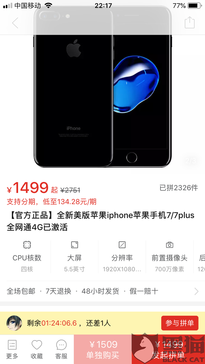 消费者“深圳百马”在5月23日向黑猫投诉平台反映:“本人5月10日在拼多多平台上的宾宾数码店花了2330元购买了一部苹果7plus手机,拼多多订单号:190***-573873193911***,微信付款交易单号:4200000290201905109240546***。5/12收到来自深圳华强北宾宾数码店的顺丰快递,商家承诺是全新机,假一赔十,但经过自己和苹果益田假日广场店售后检测,该机是翻新扩容换壳机。经过沟通,商家只同意退货退款,不同意赔偿。拼多多在5/18日收到本人的验机证明之后,一直不处理,不回复,不回电,本人多次通过网络聊天及电话,都不能联系到处理问题的493号工作人员,强烈抗议拼多多这样的维护售假行为,要求拼多处罚售假商户,给我赔偿!”