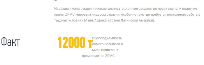 比如在介绍起重船的页面,“事实”中也只有一句:世界上最大的12000吨起重船,振华造的。