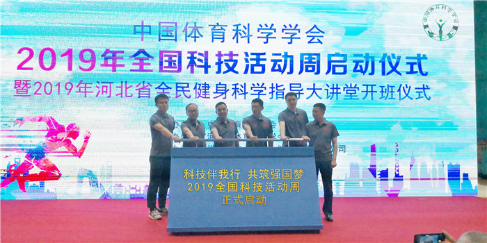 5月18日下午,由中国体育科学学会主办,河北省体育科学学会承办的2019年“全国科技活动周启动仪式”在河北省石家庄市健身与健康融合中心成功举办。