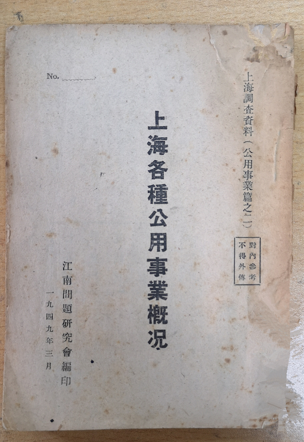 《上海各种公用事业概况》共150页,32开。此书以各项公共事业的不同单位进行划分,可以看到如上海法商电车电灯公司、英商上海自来水股份有限公司、上海煤气有限公司、上海市公共交通公司等与市民生活息息相关的公共事业单位,包括它们的经营状况、具体地址、联系方式等,可见当时对接管工作做了大量准备。
