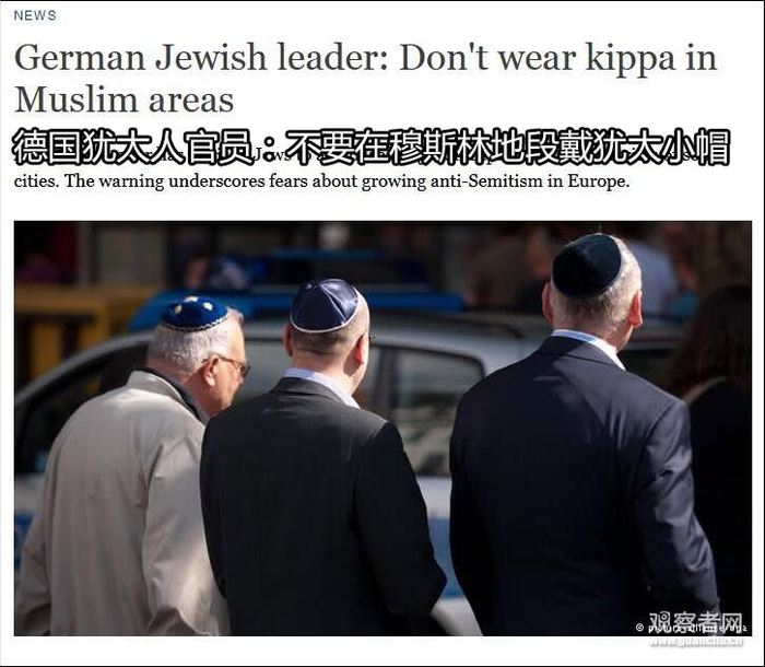 德官员建议犹太人别到哪都戴犹太小帽,以色列总统:向反犹主义投降