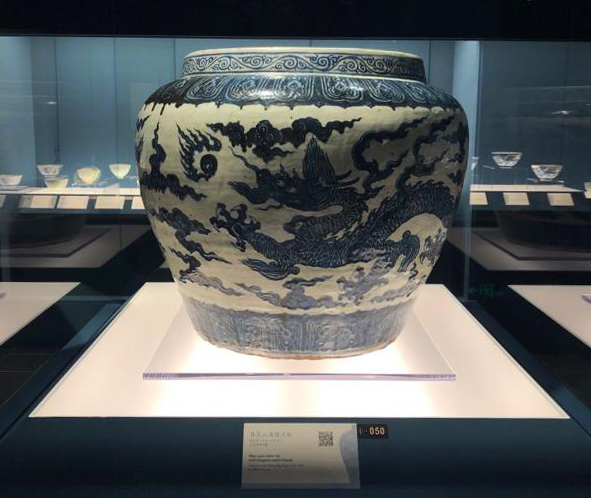 展厅入口处的 青花云龙纹大罐 高65.5厘米,口径56.5厘米 上海博物馆藏