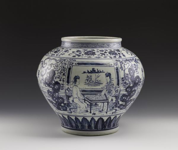青花琴棋书画仕女图罐