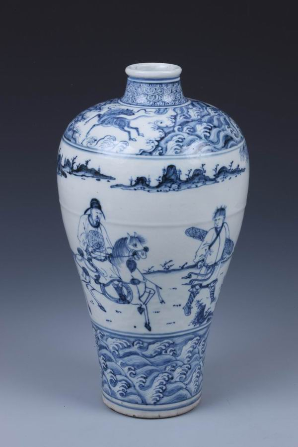 青花携琴访友图梅瓶