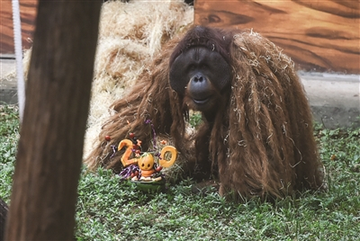 扬子晚报讯(记者 徐昇)南京红山森林动物园的红猩猩乐申,拥有众多粉丝。昨天是乐申的20岁生日,动物园特别推出了一批用乐申的画作制成的纪念品进行爱心义卖。