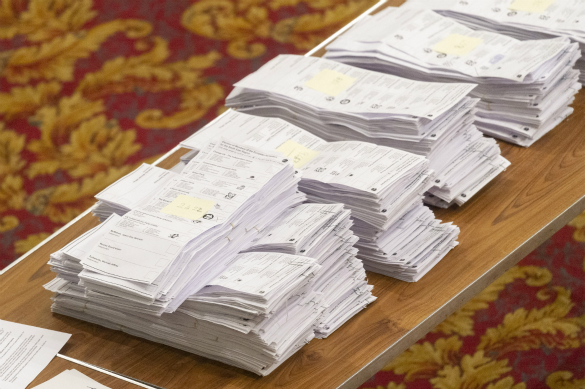 图说:五年一次的欧洲议会选举,27日早晨公布初步计票结果。新华社