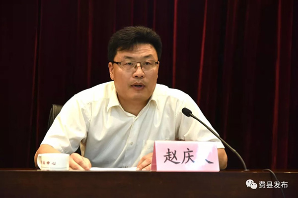 会上,临沂市委常委、组织部部长姜仕礼宣布山东省委关于费县县委主要负责同志职务调整的决定并讲话。省委批准,赵庆文同志任中共费县县委书记(副厅级)。
