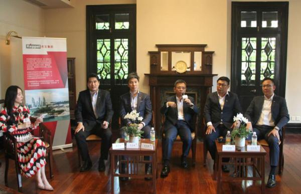 吉宝企业中国首席代表吴来顺(右三)携众高管与上海媒体交流