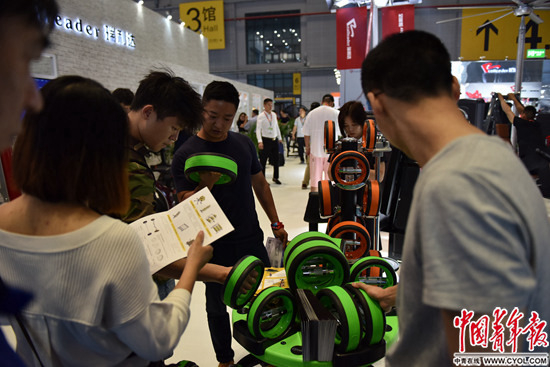 观众在了解健身器材新品。中国青年报·中青在线记者 慈鑫/摄
