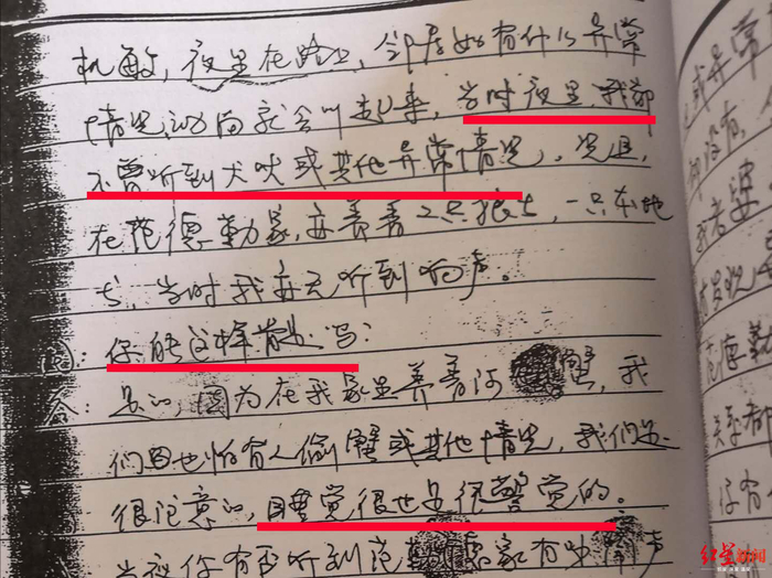 红星新闻记者注意到,瓯海公安分局的《补充侦查报告》亦提到,在对位于居民区的现场周围访问时,均没有人反映当晚有听到争吵、呼救等声音。