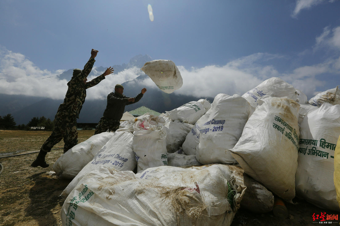 ↑2019年5月27日,尼泊尔索鲁孔布县南崎巴札,尼泊尔官方组织的大规模清洁运动。图据东方IC