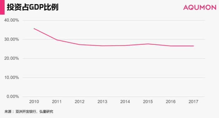 从投资需求看,越南一贯以其低廉实惠的劳动力出名,吸引了大量的海外投资,我们也常常听到“越南制造”。不过近五年,人力物力成本上升,降低了低廉的成本优势,越南境内的投资热度逐渐下降,目前越南投资占GDP的比例与菲律宾(25.13%)以及柬埔寨(23%)相近。