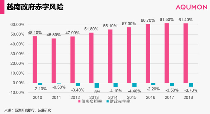 笔者认为,短期来说,基建投资在拉动GDP的同时也给越南政府带来极大的财政压力。债务压力过大,会让我们在评价越南实体经济面的时候,增加“经济增长存在泡沫”的嫌疑。假如政府的负债和赤字持续走高,但偿还能力不足,现在的表面数字也只是一片虚假的繁荣。