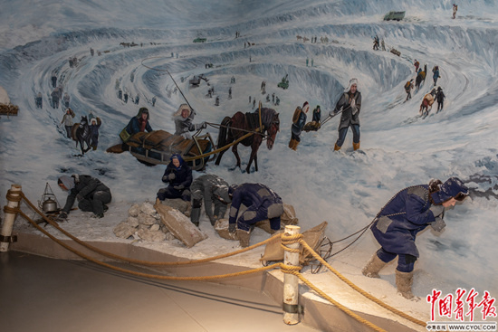 可可托海地质陈列馆,重现矿区1961年“保出口大会战”的半景画。