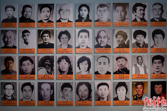 可可托海地质陈列馆,曾获各项荣誉的矿区优秀工作者的照片。