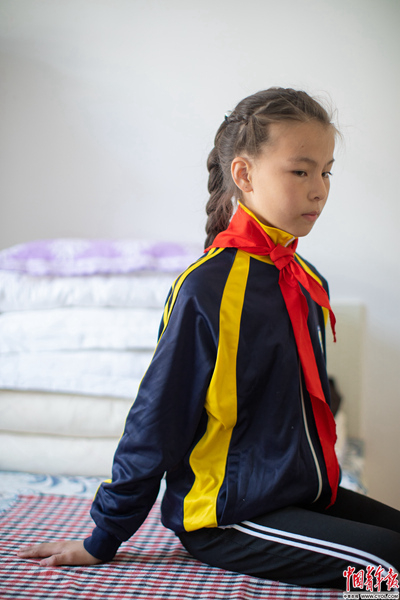 可可托海镇,11岁的“矿四代”阿勒特耐在爷爷奶奶家中。爷爷是这里的老矿工。