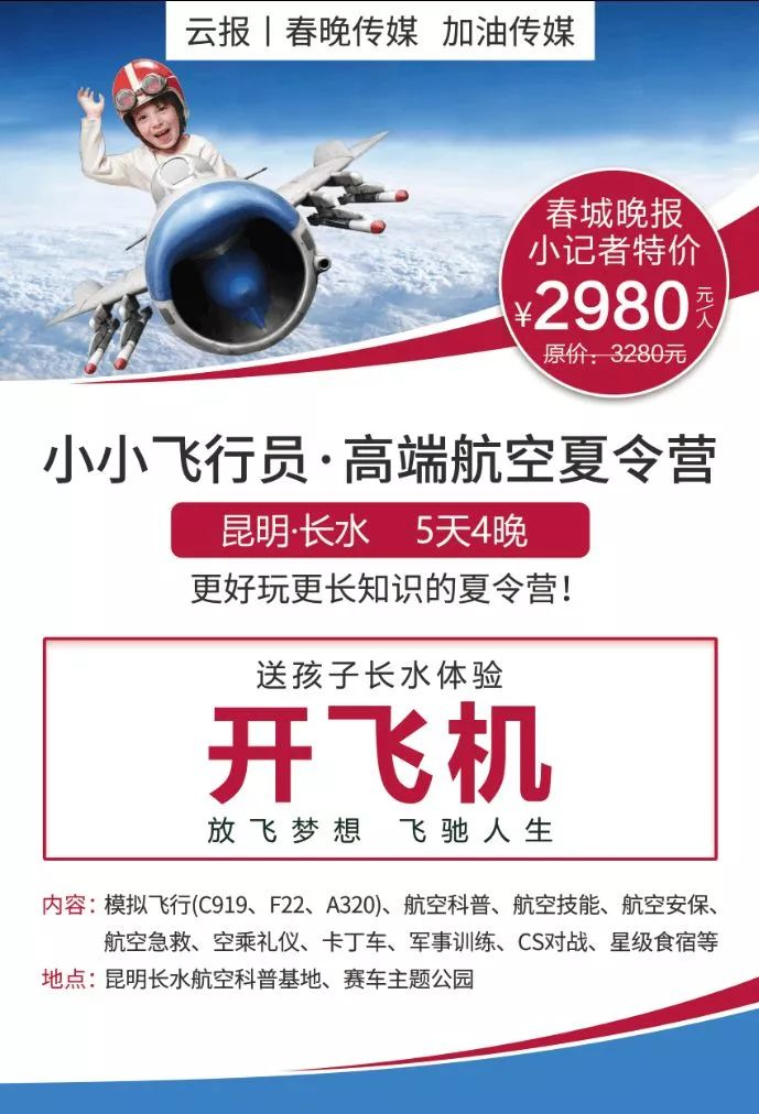“小小飞行员”高端航空夏令营开营啦!春城晚报小记者报名享特惠
