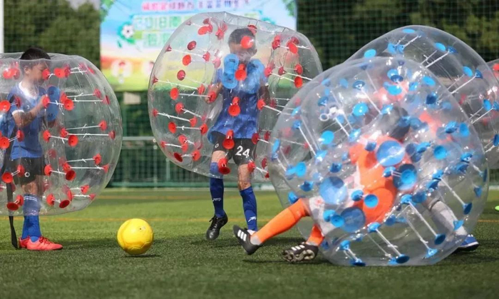 参与人员身穿太空气泡足球装备,来一场“基情”+“激情”四射的泡泡足球大赛,在竞技性同时更加突出了运动的娱乐性。