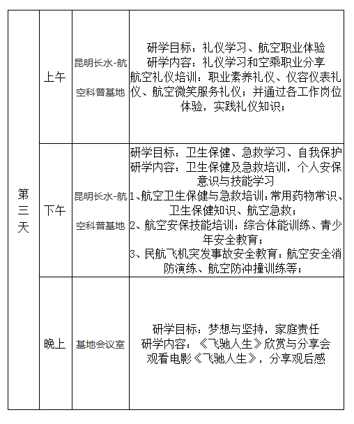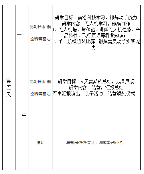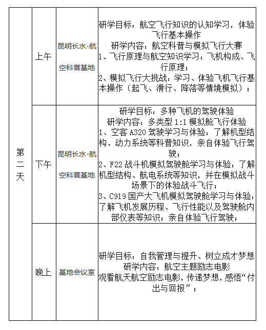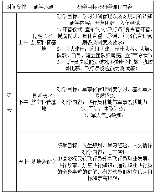 01行程安排表小小飞行员高端夏令营(5天4晚)行程安排表