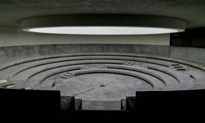 这座由阿那亚与如恩设计研究室(Neri&Hu Design and Research Office)合力打造的艺术中心,在建设中,最大程度利用基地面积,在中心位置挖凿出一个倒置的圆台空间,形成一座环形的阶梯式剧场。利用螺旋上升的流线将人们引导画廊空间,在展陈艺术品的过程中激发人们的观赏欲。