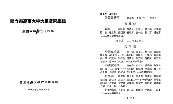 《国立南高东大中大毕业同学录(民国六年至三十四年)》(中国国家数字图书馆)