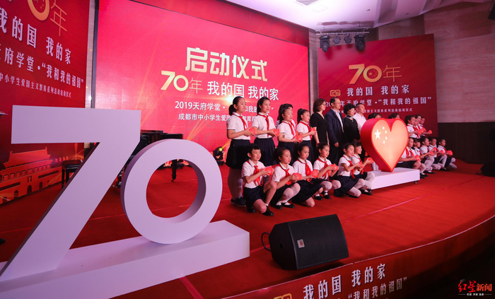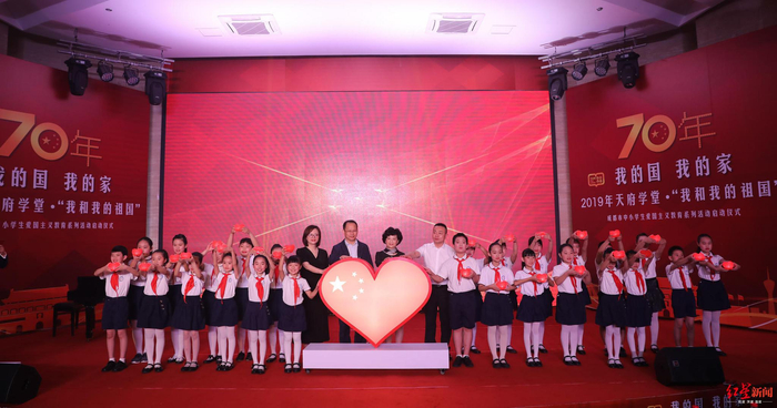 爱国的火炬,需要传递;爱国的精神,需要传承。5月30日,由中共成都市委宣传部指导,成都市教育局主办,成华区教育局、成都商报·成都儿童团、成都市成华小学校承办的2019天府学堂·“我和我的祖国”成都市中小学生爱国主义教育系列活动启动仪式,在成华小学拉开帷幕。本次启动仪式通过红星新闻客户端进行了网络视频直播,截至记者发稿,全网的累计观看量已达到102.24万人次。自此,全成都的中小学校都将以每月一主题的方式,展开丰富多彩的爱国主义教育活动,让孩子们在活动的浸润中树立家国自信。