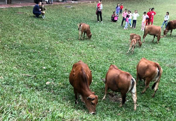怎样既能维持无噪音环境,同时还能解决校园杂草绿化问题呢?放牛啊!