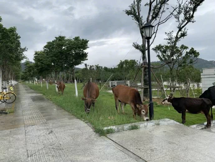 据时间视频报道,照片中的牛的确是厦门大学翔安校区的,不过并不是网传所说的那样是校方特地为了安静除草找来的牛。