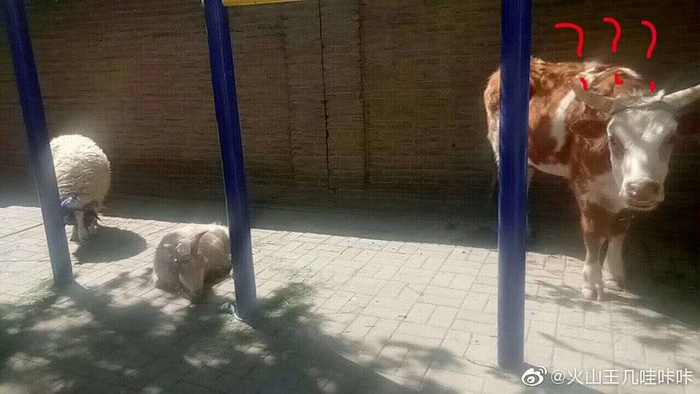 还有不少网友也发出了自己学校里牛羊成群“除草”的神奇画面。