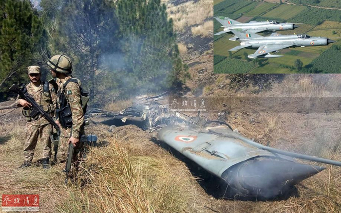 图为巴基斯坦陆军士兵在巴方一侧控制区发现的被击落的印军米格-21 Bison战机残骸。右上小图为印度的米格-21 Bison改进型资料图。