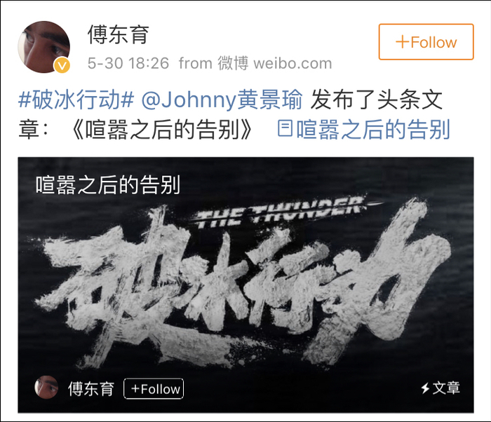 5月30日晚,该剧迎来大结局。在大结局播出前,该剧导演@傅东育 在微博发布长文《喧嚣之后的告别》,回忆拍摄经历的同时,也在文中回应质疑。他表示,《破冰行动》不仅是一个强情节、强动作、热闹的商业作品,他更想表现人物的情感和命运的无常,而今天的成像符合他对于整个作品的预设。